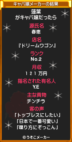 客の声噴いたww喋り方にぞっこんて…ようしそれじゃあ今日の日記は蓮葉の素の喋り方でやってやろうじゃねえの。サーセンあたしめちゃめちゃ口悪いから覚悟しとけ。