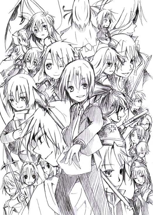 余談ですがマユキ以外は全員初登場衣装です。ルナは巫子狩り衣装だけど…そのとき正体が知れてなかったとはいえ一応初登場は巫子狩り立場だったのでこういう形にしてます。ロビの軍服をもっとちゃんと描きたかったんだけど"黒い本"でほとんど隠れてしまった…次の機会にしよう。