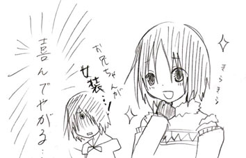 勿論仮装の首位が魔「女」なので、上のフィーユの言うとおり、女装です。